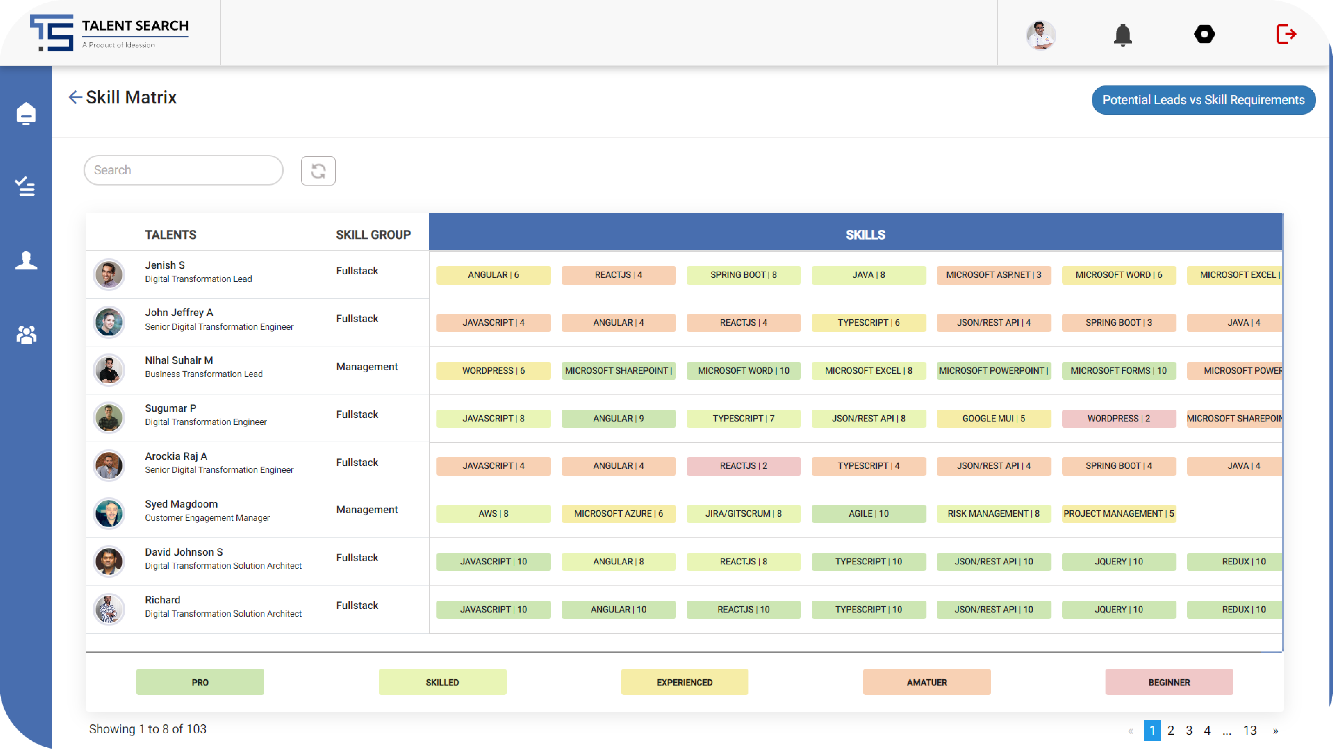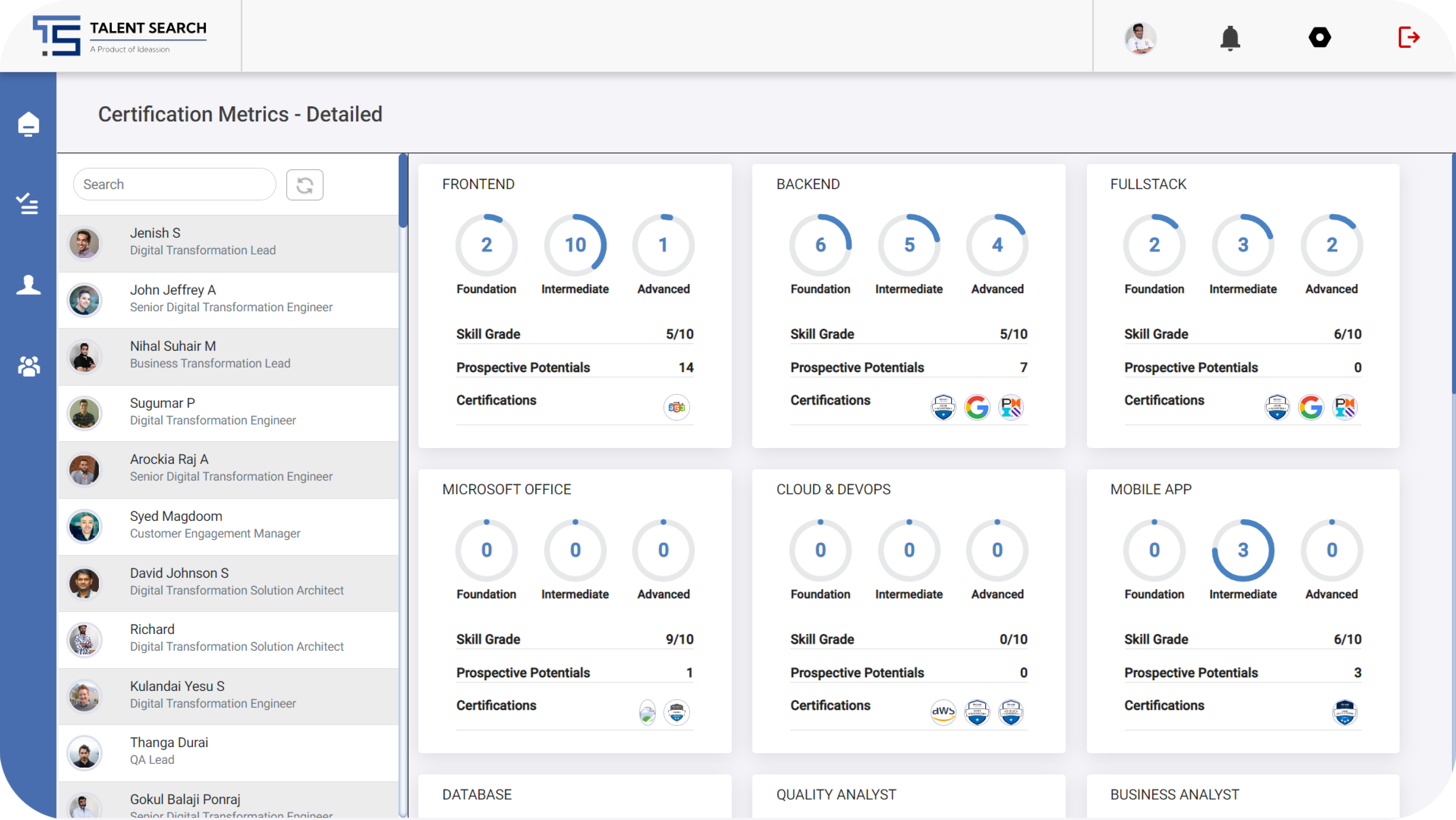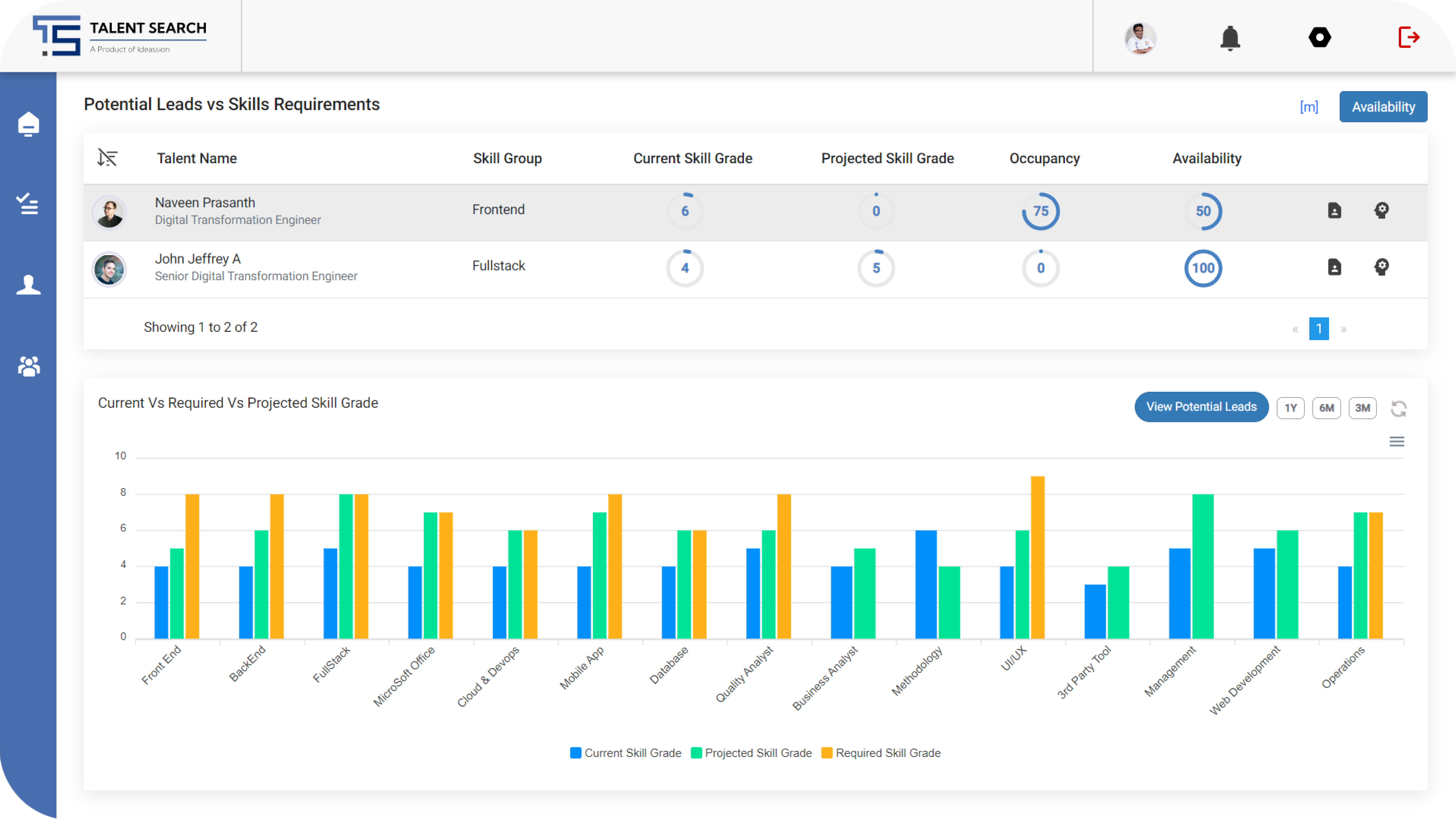 Balance potential customer demand with skill requirements, the platform enables you to digitally re-track progress and store talents like a database in dashboard view.